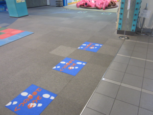 加古川海洋文化センター様からご注文いただいたオリジナルタイルカーペットです。設置前と設置後の写真を送っていただきました。