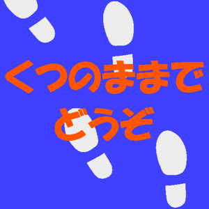 500×500㎜のタイルカーペットに「くつのままでどうぞ」のメッセージを入れたデザインでご注文いただきました。