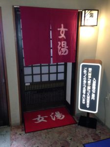 玄関マットが足元から、女湯と男湯の案内をしてくれています。