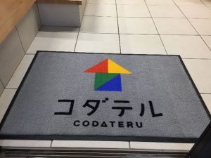 「先ほど、マットが無事届きました。ロゴの部分がしっかり発色しており、大変満足しております。さっそく設置しましたので、いくつか写真を添付しております。よろしければご利用下さい。この度は、ありがとうございました。」