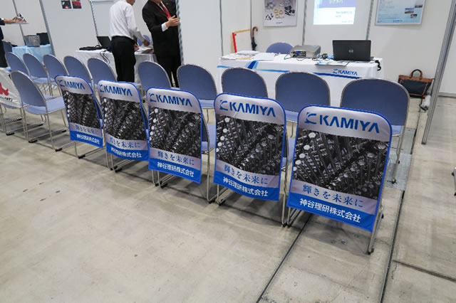 パイプ椅子だけでは、どうしても物足りない感じになります。就職フェアや企業説明会などでは、ロゴマークや社名を入れたパイプ椅子カバーが華やかに彩ります。