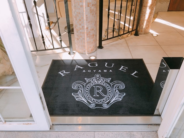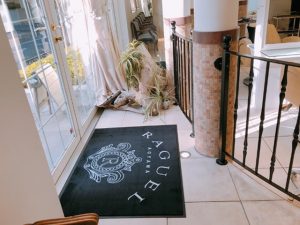 玄関マットは、本来の目的だけでなく、お店の顔としてイメージ作りも担います。こちらの美容室のマットはお洒落で存在感があります。