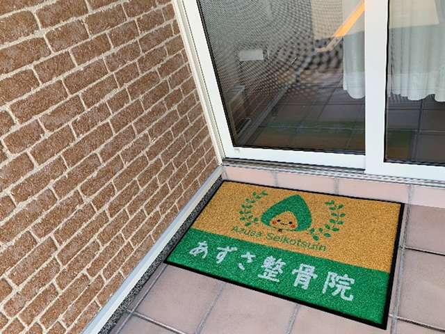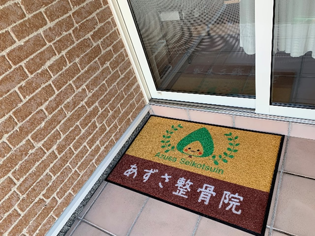 整骨院のマットがとても可愛らしく仕上がりました。色違いで2枚お買い求めいただきましたが、どちらの色もとても優しい印象です。