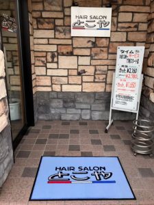 ヘアーサロンをされているご両親へ玄関マットをプレゼントされました。とこやの文字の下には、理容室のシンボル「サインポール」の三色がデザインされていて粋なマットが出来上がりました。