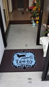 「5/28 玄関マット届きました。今回は、開店のお祝いとして作成して頂きましたが、オーナーさんも大喜びでした。オーナーさんの了解で、写真を添付いたします。」