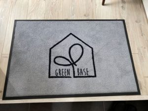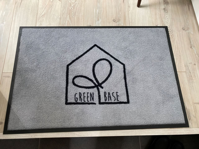 マットの真ん中にロゴを入れたデザインはシンプルでありながら、とてもお洒落なマットに仕上がりました。