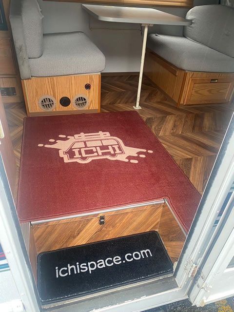 以前よりご愛顧いただいているお客様より、キャンピングカーにて使用する2種類のオリジナルマットをご注文いただきました。色合い、デザイン共に周囲の雰囲気にとても馴染んでお洒落な印象に仕上がっています。