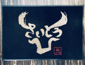 「グランドオープン初日からお店の出入り口に毎日敷いてくださっているようです!マットの「牛ロゴ」と「感謝の極み」はお店の看板にもなっております。お店の間口等を一切知らずに一か八かで作っていただきましたがサイズもピッタリでした。実際マットに足を踏み込んでみると滑らず踏み心地も良くとても丈夫で立派なマットでした。 半年間毎日使用でこれは本当に素晴らしいと私自身感動いたしました!」