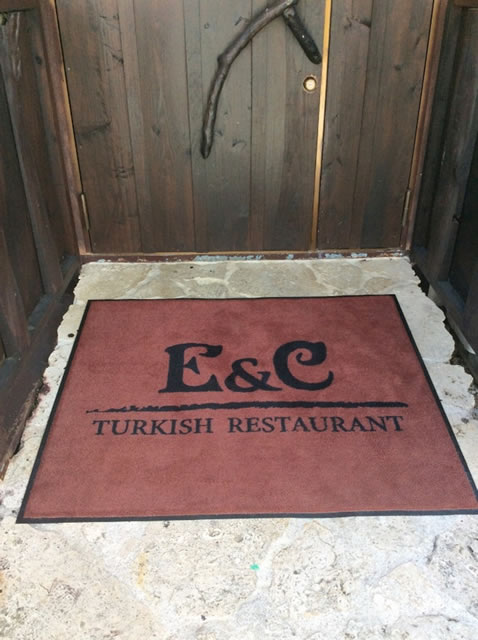 ロゴマークを入れたE&C様のスロープマットです。裏側のゴムも滑らず、しっかりした品質だとお褒めいただきました。