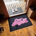 会社のロゴを真ん中に大きく入れた玄関マットです。 黒地は黒色のゴムの縁とも自然に馴染みます。ゴムの縁はめくれ、躓き防止の役割もありますので往来の多い出入口にはおススメです。 カーステージ心様 お店のロゴを真ん中に大きくい […]